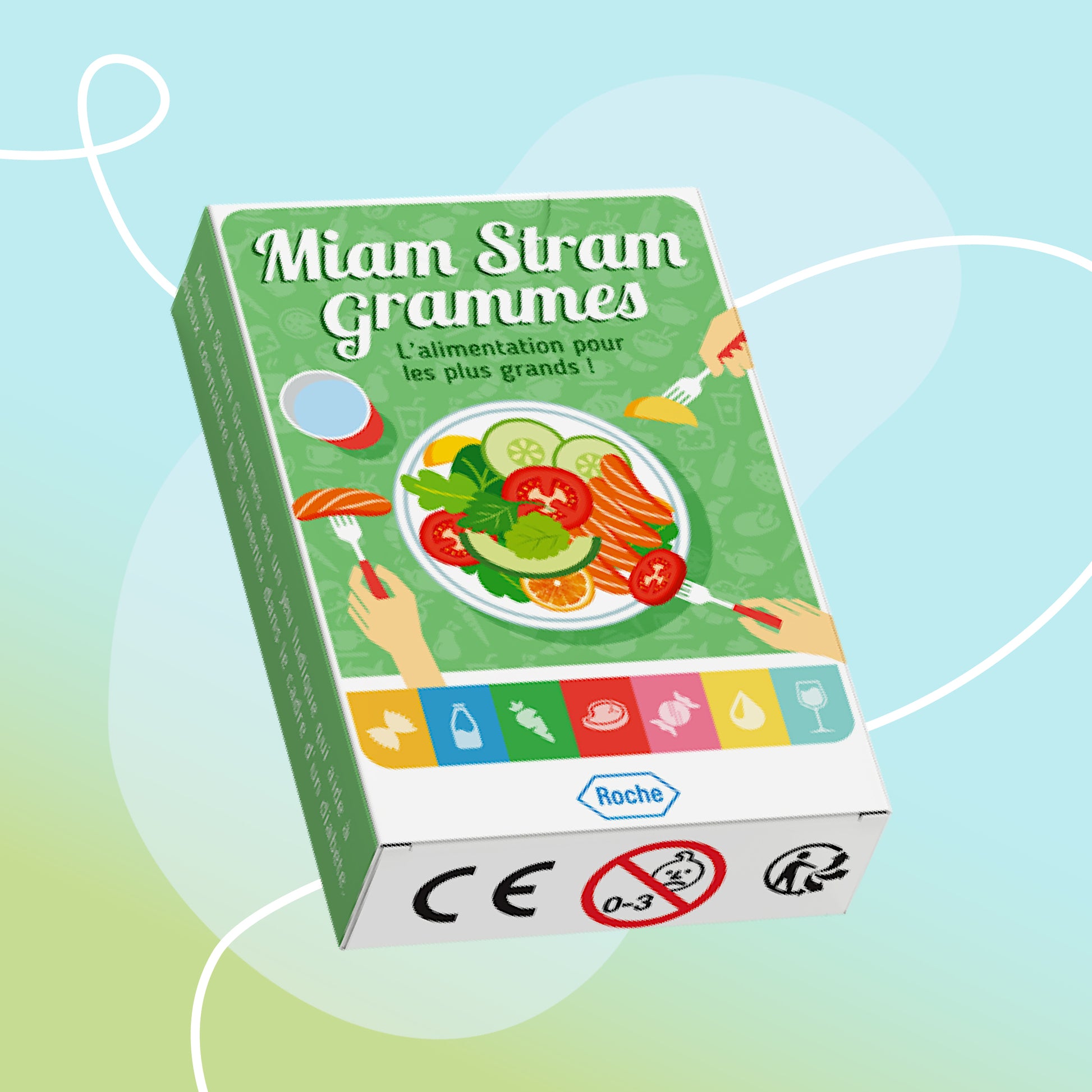 "Miam Stram Grammes" est un jeu de cartes conçu pour sensibiliser les adultes à l'importance d'une alimentation équilibrée. À travers des parties amusantes et éducatives, les joueurs apprennent à composer des repas sains tout en jouant.